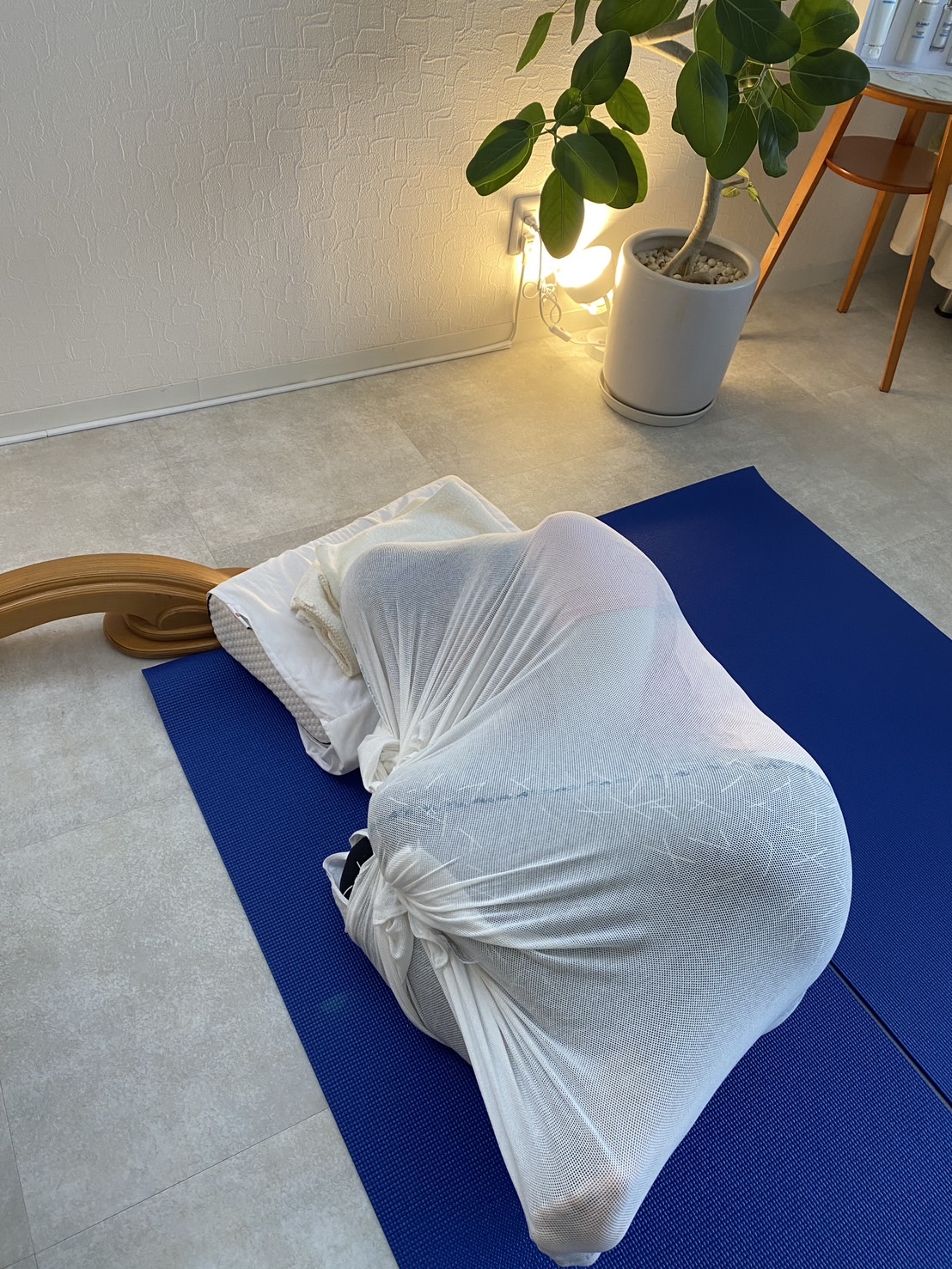 「おとなまき」をご存知ですか?赤ちゃんがお母さんのお腹の中でいるようなリラックスと安心感を味わってもらいます。 布に体を預けることでハンモックの中で包み込まれるあの感覚、お休みになる方も多いメニュー。日頃頑張っているあなたにひと時力を抜いてゆっくりとした時間を味わっていただきます。